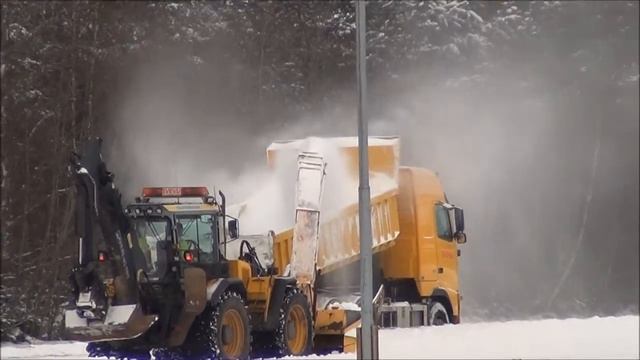 Hydrema 906 backhoe loader, loading dirt on to a Volvo FM12 truck, on a small construction site in Denmark.