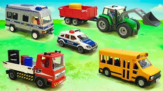 Полицейская машина Трактор Экскаватор Мусоровоз Police Tractor Garbage Tow Truck Toys Vehicles..mp4