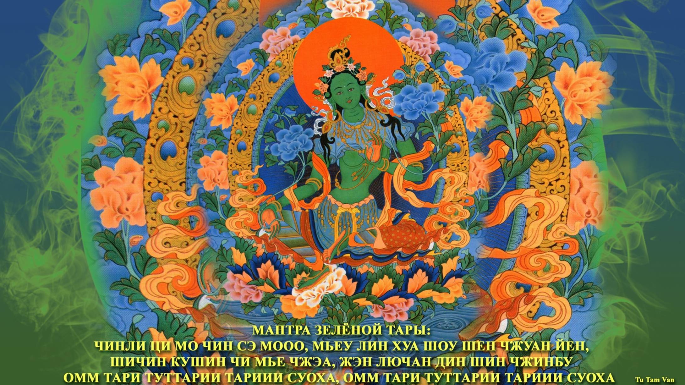 Мантра Зелёной Тары скоропомощницы - быстро приходящей на помощь защищающая от восьми главных страхов прогоняющая демонов и невзгоды дарующая практикующим просветление - видение структуры мира в его космической конечной реальности.