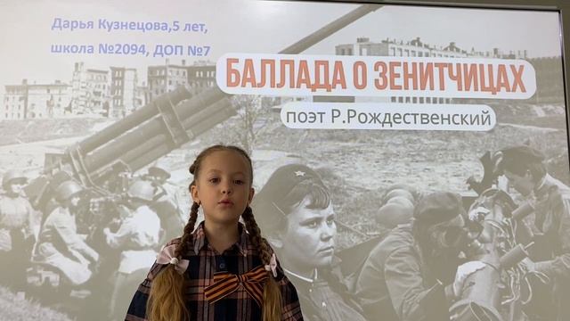 Моя внучка Дарья читает стих о войне.