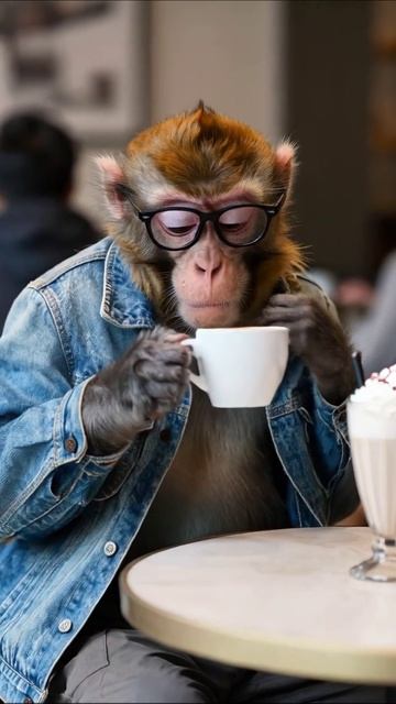 ⇒Расскажите об этом видео Обезьяна-кафе: стильный отдыхающий с кофе обезьяны кофе юмор, своим друзьям в социальных сетях.