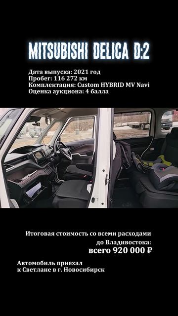 отзывы Роман из Новосибирска прислал видео с автомобилем эта красавица оформлена на супругу Светлану который пришёл осенью. Дата выпуска: 2021 год Пробег: 116 272 км Комплектация: Custom HYBRID MV Navi Оценка аукциона: 4 балла Итоговая стоимость со всеми расходами до Владивостока: всего 920 000 Хотите получить такой же проверенный и свежий автомобиль? Связь: Николай 79132988982 Mitsubishi АвтоизЯпонии автоВладивосток автозаказ правыйруль