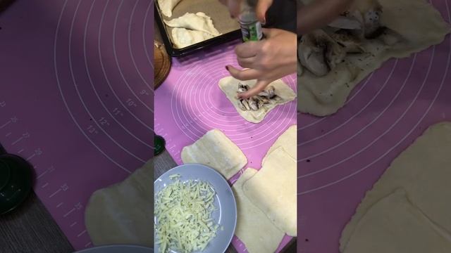 Слоёное тесто.Начинка грибы шампиньоны и сулугуни.