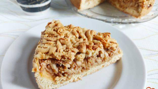 Тертый пирог из песочного теста с начинкой из яблок с корицей и взбитыми белками - это очень вкусная и ароматная домашняя выпечка.