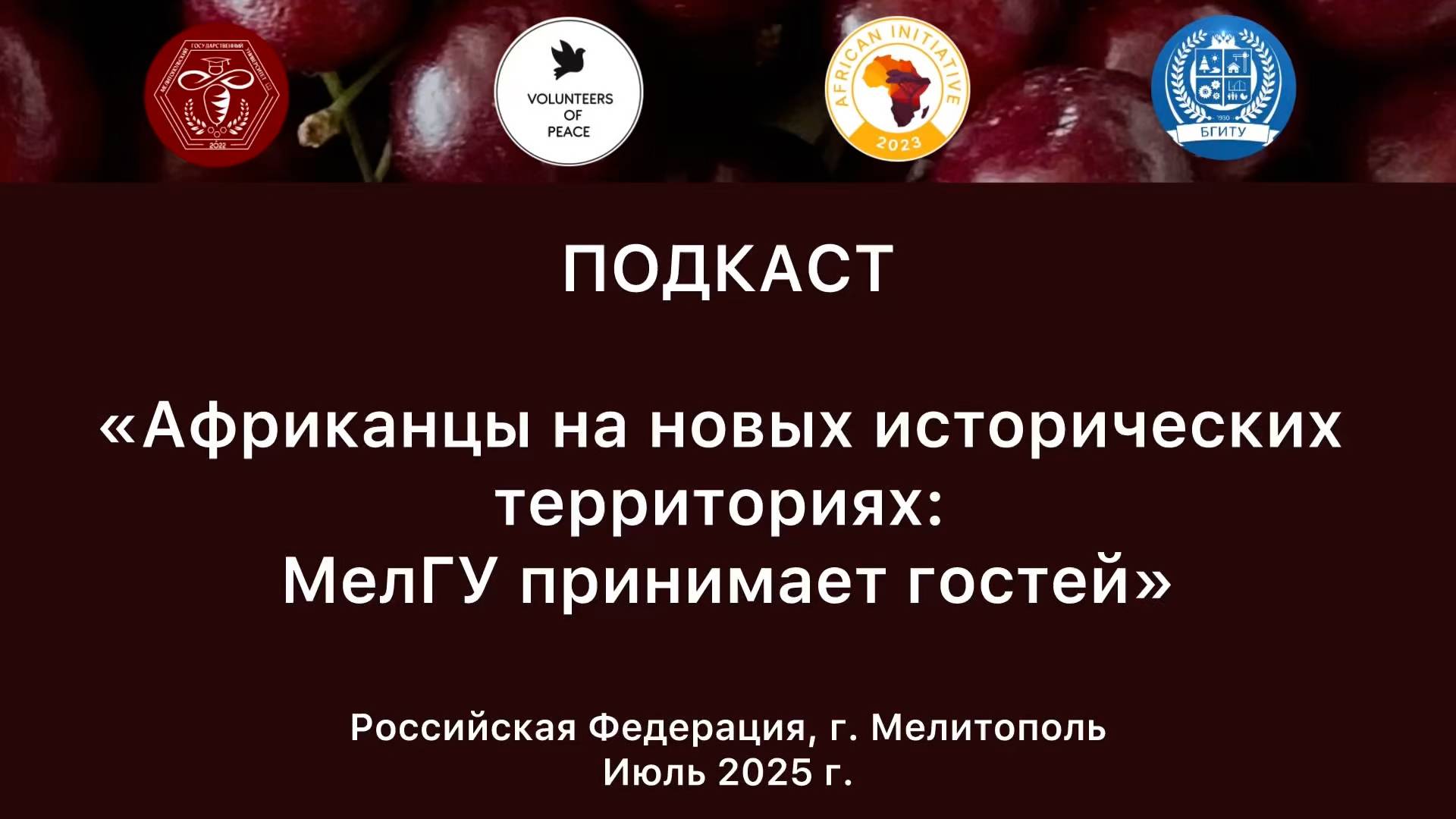⇒Расскажите об этом видео 07.2025 Подкаст. Мелитополь. Африканцы на новых исторических территориях. МелГУ принимает гостей, своим друзьям в социальных сетях.